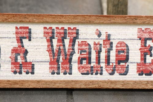 ![]() Photo 13. The thin frame for the tank was covered with pre-painted weathered boards. Tank bands were cut from note book paper and the water is Future Floor Wax. The brass wire supply pipes were immersed in Radio Shack Archer's Etchant, then chemically colored with gun bluing solution. | ![]() Photo 14. A new sign was created with Adobe Photoshop and glued to a scrap of thin aircraft plywood. |