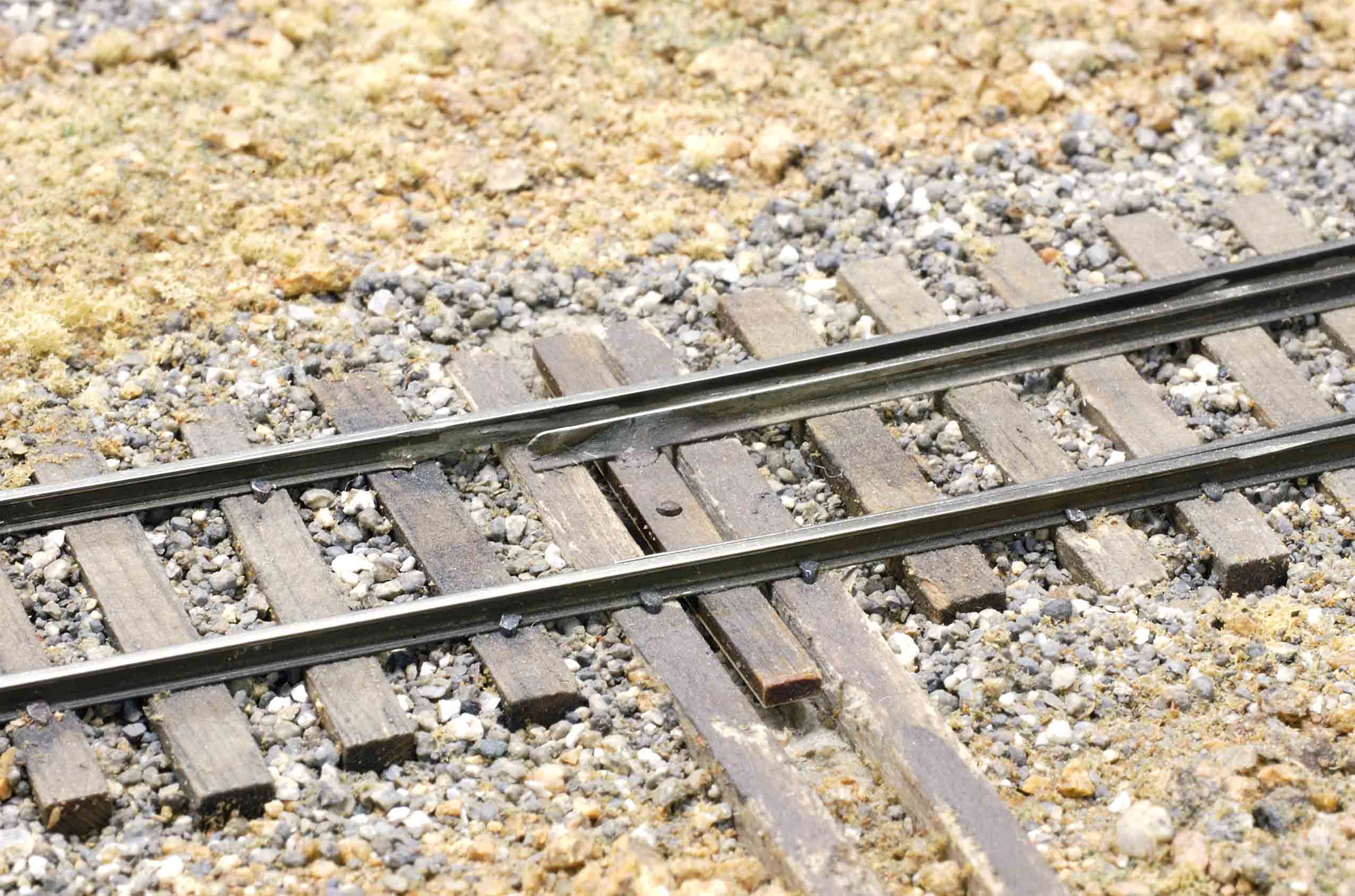 ![]() This document is similar to one that appeared in the February 2008 issue of, "Scale Rails," which was the name of the monthy publication issued by the NMRA. Many of the photos used in that article appear here also, but the text has been edited to fit this format better. Over the past four decades, I've probably built and hand-laid over a hundred or so turnouts. I know in the prototype world they're called, "switches," but for this article, I'm going to stick with the common modelers usage of the term, "turnout." My first efforts at handlaying track and turnouts consisted of removing the rail from its fiber or plastic ties, then spiking the pieces back onto hand-laid wooden ties. I didn't have to do any frog and point filing back then, but at least I was learning how to lay track. I had just completed a short spur to a small community on my Sn3 Cimarron and Tall Timbers RR and needed to add another switch. While I'm not going to describe the complete hand-laying details of the turnout, I do plan to illustrate how I actually connect and move the points of this new turnout. | |
